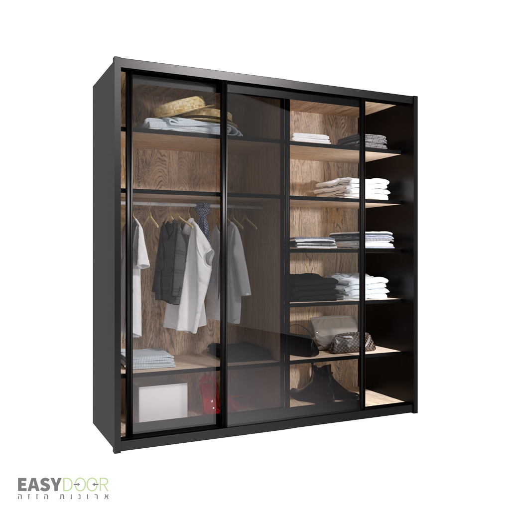 ארון הזזה דגם רום דלתות זכוכית שקופה כהה 200